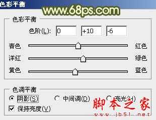 5、创建色彩平衡调整图层,对阴影、中间调、高光进行调整,参数设置如图15 - 17,效果如图18。这一步给图片增加一些褐色。
