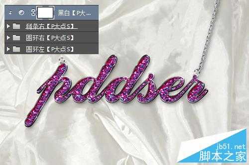 下面,我们开始绘制文字挂链文字与链子相连接的圆环。设置前景色为#a5a5a5,画一个25X25像素的圆形,并使这个圆形居于文字图层组的下层位置。