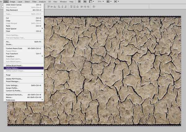 现在我们将对三个文字版本中的常规版本进行一些图层修饰。在这之前,我们需要进行一些其他的操作。下载并打开素材 Crackles0014 ,执行Ctrl + A ,再执行编辑>自定义图案,命名为”裂缝模式”。