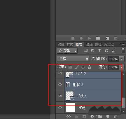 5、在【图层面板】中,按住shift键选中所有的形状图层