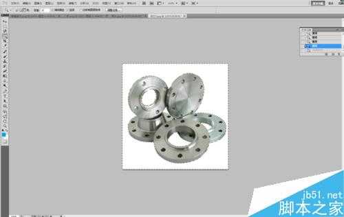 我们挪过来之后发现广告这样子比较单调,那么我们现在再把产品挪过来,在挪产品的时候我们注意一下,弯头我们依旧可以采用磁性套索工具,但是法兰不行啊,它内部还有空白啊,这个我们就需要用到魔棒工具,