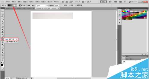 第二步,接下来我们需要给这个图层进行渐变填充,如图所示,选择渐变填充工具,点击一下图中箭头所指的地方,选择渐变颜色和填充的样式,颜色我们选择黑色到白色的渐变,朋友们可以研究一下其他不同种类的渐变效果。
