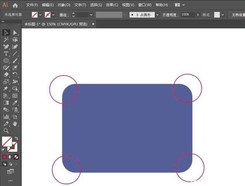 2、复制四层,画四个小圆用路径查找器分别将四角切下来,放到矩形上,稍微向外错位一些。