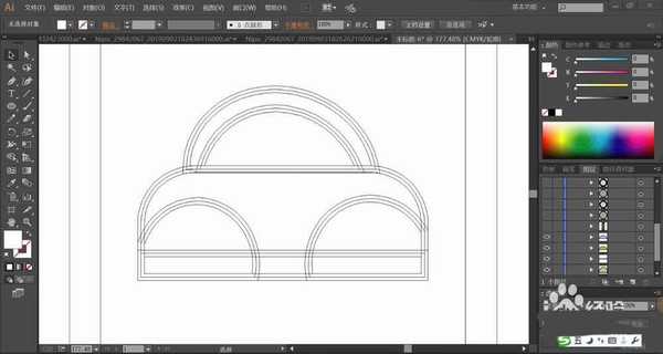 2、接着,我们继续使用圆形画出车轮的细节元素,使用矩形画出车灯等车体细节元素的路径。